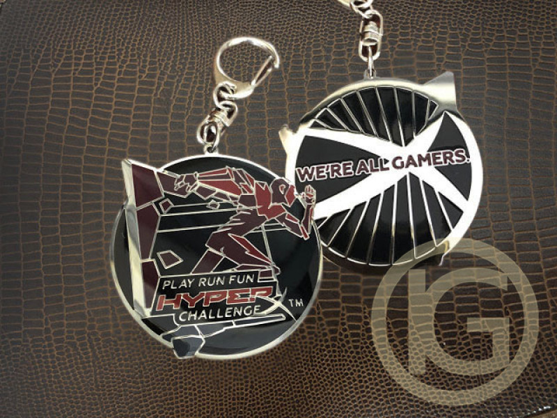 The manufacture of keyfobs from metal "hyperX challenge" is made to order, the production method of keyfobs is metal etching.