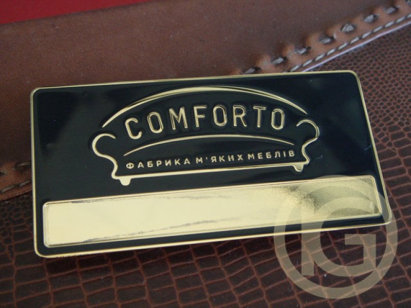 Or the second, the most common option is making badges for a removable name: the image is transferred to metal badges by etching. Text information with the name is printed on a self-adhesive, transparent film (arakal), then pasted into a specially provided, pressed-through place (window) in the badge. When changing staff, you just have to replace this film with a new one. The production of badges can be made in any size, but we can offer you the production of badges of standard sizes, the most common sizes when ordering metal badges: 65 * 30 mm, 70 * 25 mm, etc.