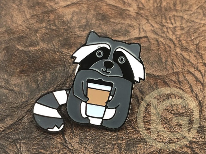 Fashion pins "raccoon" are custom-made, the method of manufacturing pins - etching