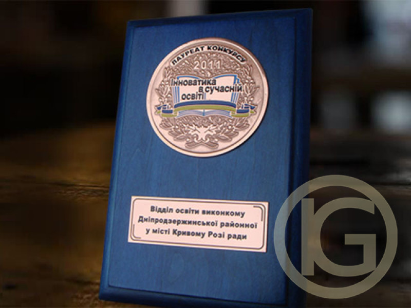Award diplomas - plaques "Winner of the Innovation Competition in Modern Education 2011", made by etching. A medal and an overlay with a nomination ...