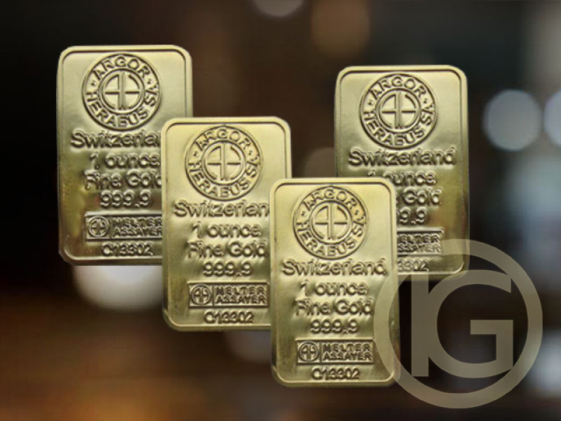 Dummies of bank metals of gold "Argor Switzerland". Plaster casts made by pickling with gold coating.