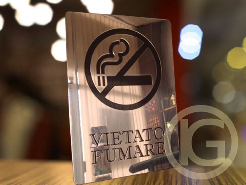 Metal information plate "no smoking", manufacturing method - metal etching, copper coating, enamel coating, varnish, double-sided adhesive tape.