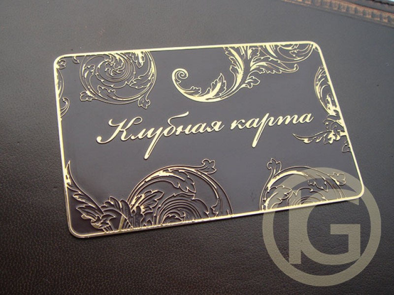 Club cards made of metal - production of metal club cards, metal discount cards, metal certificates: on these metal business cards (cards) it is common to put information in a corporate style, with the address, phone numbers displayed. It is allowed to use complex decorative fonts italic, as well as bold, advanced design on metal club cards.