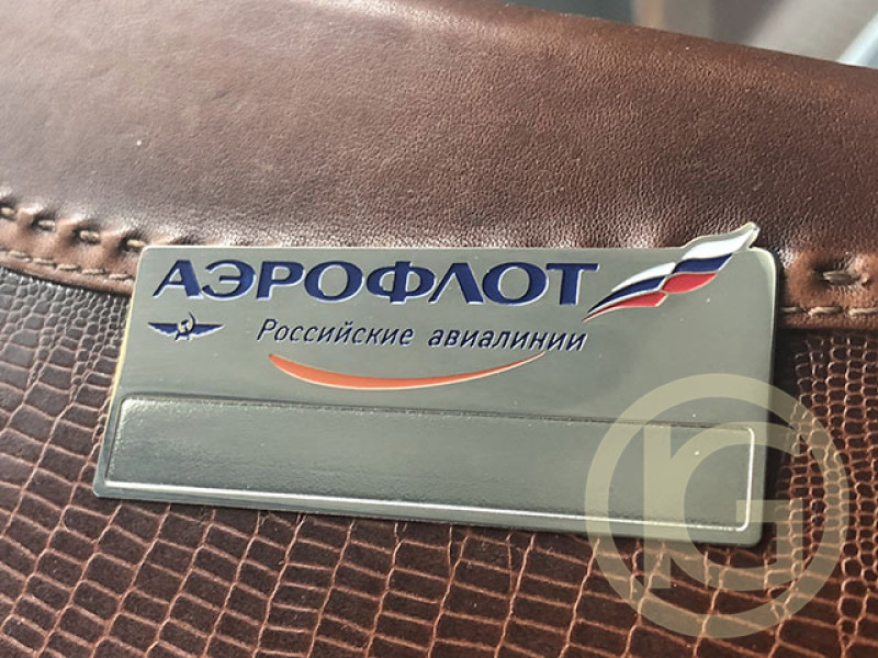 Металлические бейджи для пилотов и стюардесс авиакомпании "Аэрофлот", корпоративные бейджи с логотипом и окошком для замены имени. Изготовление бейджей выполнено под заказ методом травление металла.