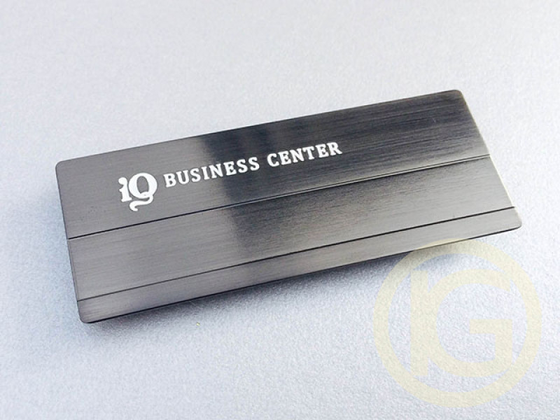 Требуемое изображение и текстовая информация переносится на металл методом травления без последующей возможности внесения изменений в готовом изделии, иными словами именной бейдж.