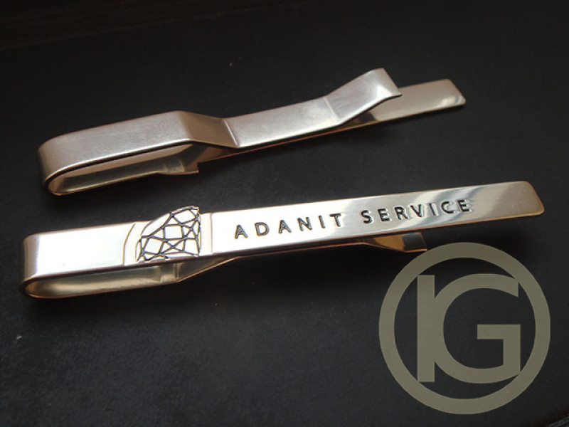 Металлические галстучные зажимы с логотипом "adanit service", изготовление выполнено травлением металла, декоративное покрытие никель, окрас цветной эмалью...