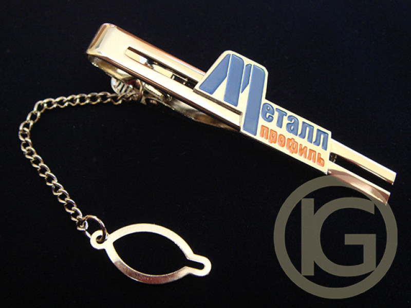 Металлические зажимы для галстука с накладкой, логотипом "металл профиль", изготовление выполнено травлением металла, декоративное покрытие никель, окрас цветной эмалью...