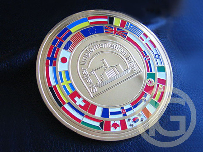 Памятные медали с окрасом цветными эмалями "проект "Укрытие" ЧАЭС - Chernobyl Shelter Implementation Plan (SIP)". Изготовление медалей на заказ, выполнено методом производства медалей - травление металла.