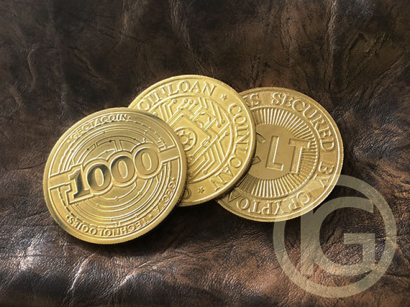 Памятные, сувенирные монеты - криптовалюта - крипто монеты "CLT", производство монет выполнено под заказ, метод изготовления монет - двухстороннее травление.