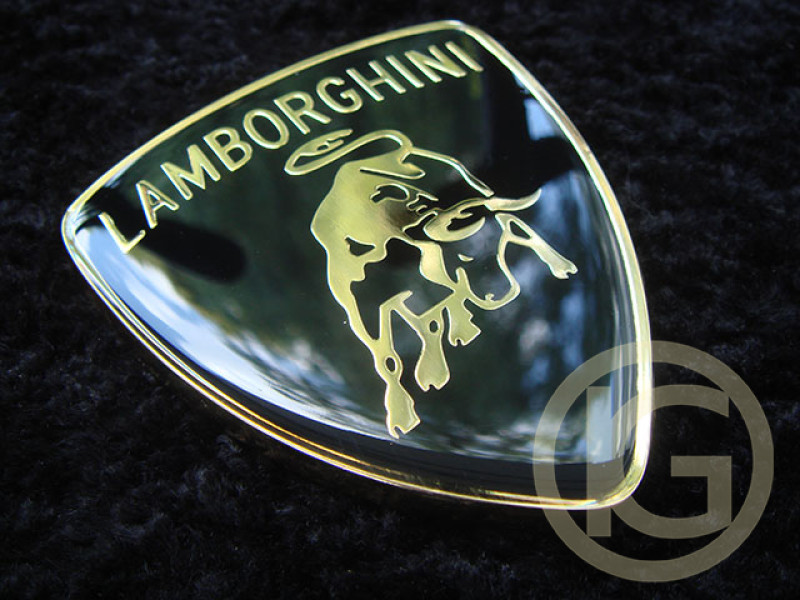 Шильд на авто из металла на заказ "Lamborghini". Производство автомобильных шильд из металла, выполнено методом травления.