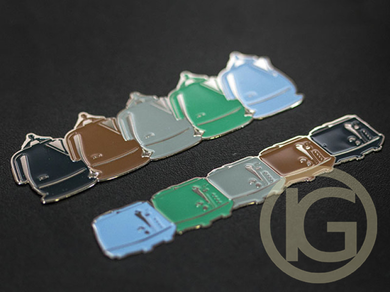 Чтобы сделать металлические накладки более яркими и привлекательными, при изготовлении, мы используем цветные эмали и лаки, позволяющие получить на накладках различные эффекты.