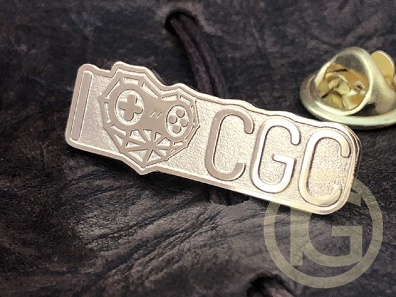 Фірмові значки з логотипом - корпоративні значки "CGC", виготовлення значків виконано травленням металу.
