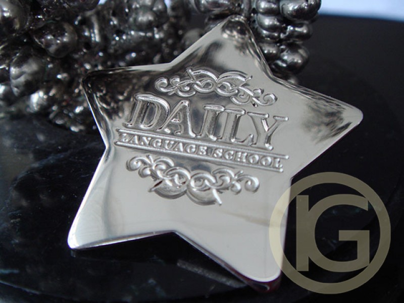 Виготовлення значків з логотипом "Daily school" виконано методом виробництва металевих значків - травлення металу.