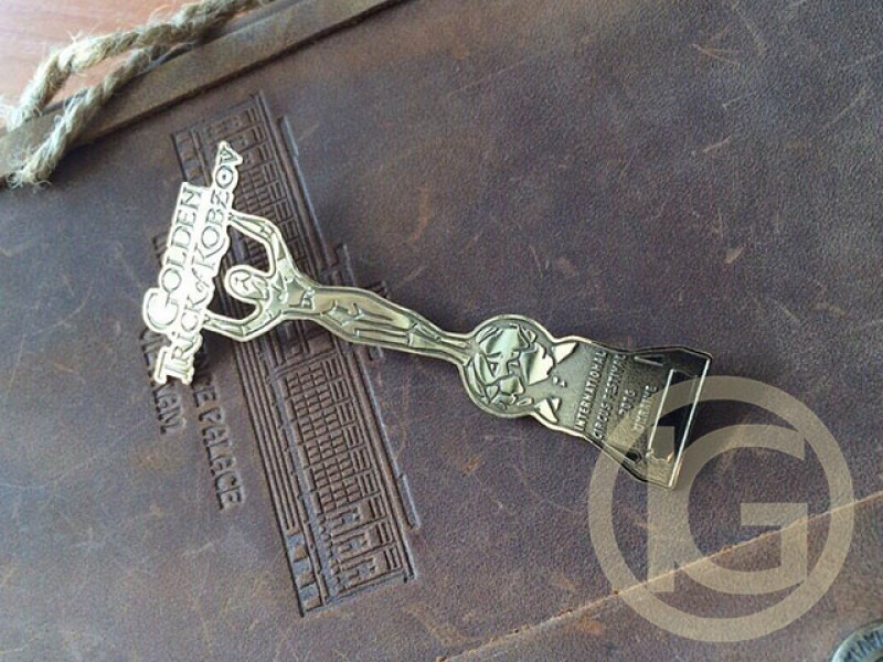 Виготовлення нагрудних нагородних значків "Golden Trick of Kobzov oskar" виконано методом травлення.