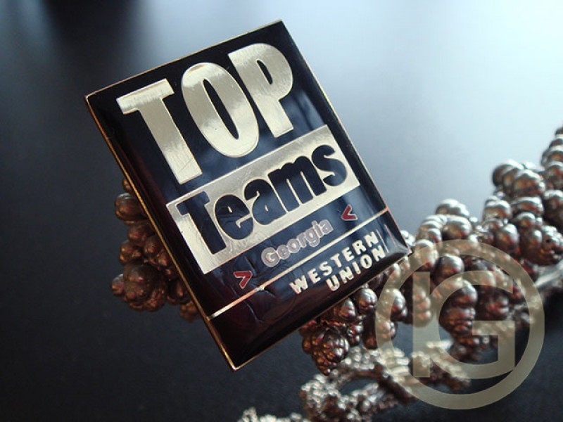 Виготовлення значків з металу "top teams Western Union" виконано методом виробництва металевих значків - травлення.