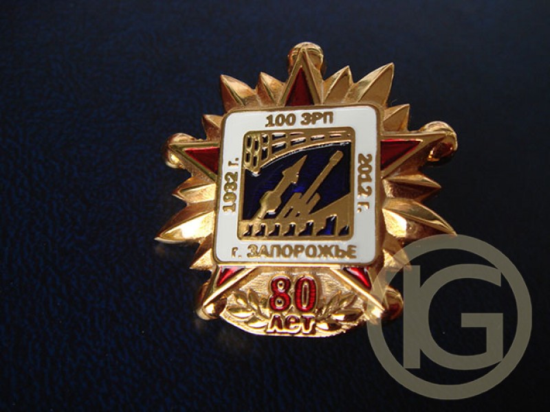 Значки металеві "80 років ЗРП", виготовлення значків виконано методом штампування значків з металу.