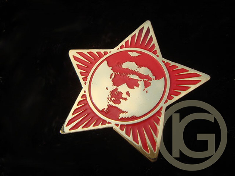 Виготовлення значків з портретом в формі зірки, виконано на замовлення, метод виробництва значків - травлення металу.
