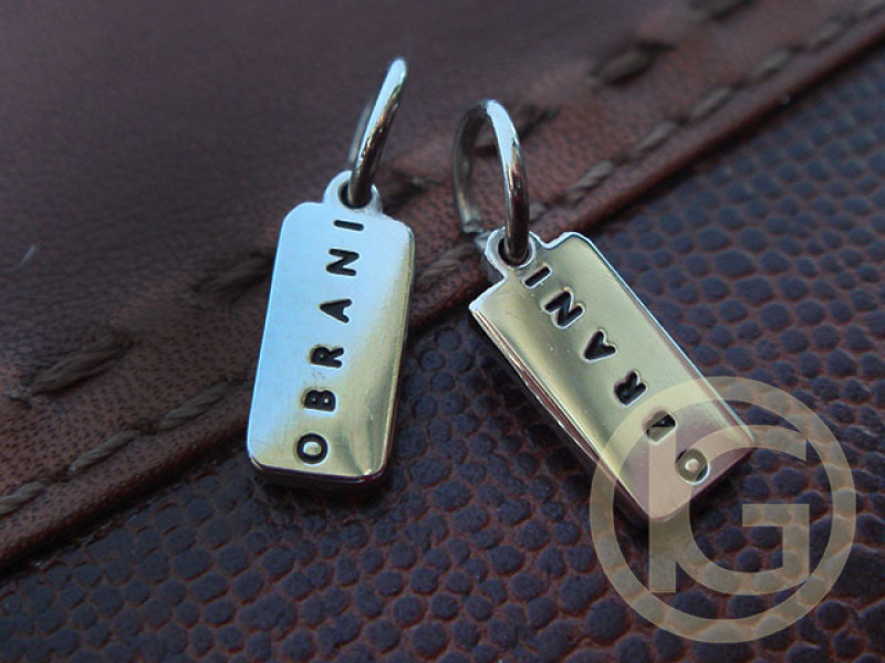 Металеві ярлики, підвіски - кулони "obrani", метод виготовлення - травлення металу, декоративне покриття нікель, окрас емаллю, кріплення підвіски - металеве перехідне кільце.