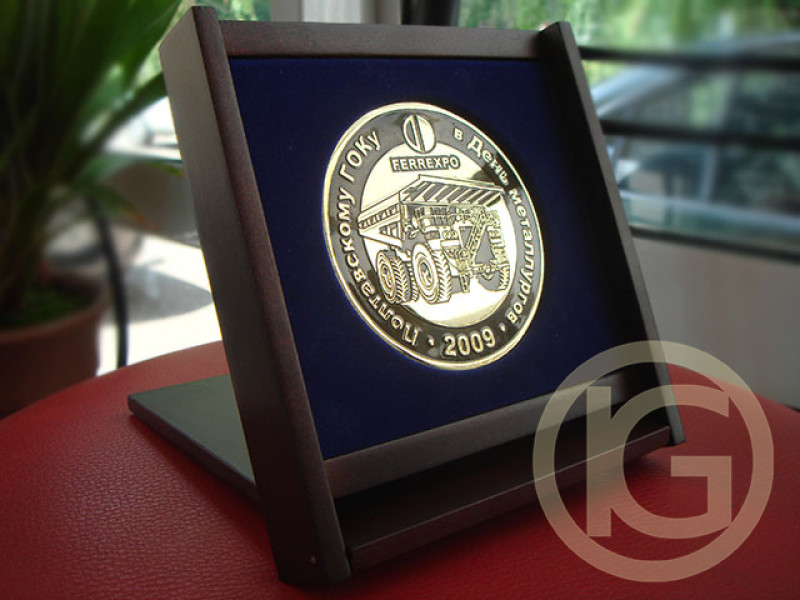 Медалі в футлярах "ferrexpo". Вітальні медалі в день металургів виконані методом травлення. Футляри для медалей, виготовлені з натурального дерева, передбачений оксамитовий ложемент з посадковим місцем під діаметр медалі.
