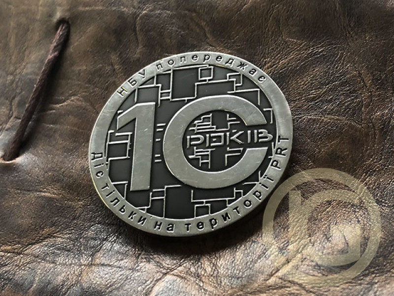 Ювілейні - корпоративні монети з металу, виробництво монет виконано на замовлення, метод виготовлення монет - травлення.