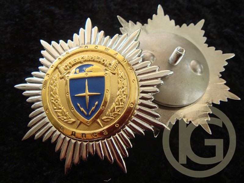 Відзнака - нагородний знак "Державна служба спеціального зв'язку", виготовлення знаків, орденів виконано за технологією холодного штампування штампування в 2 х деталях, покриття зірки знака - нікель, центральний діаметр знака - золото, окрас кольоровими емалями, лаками. Кріплення для нагрудних знаків, орденів - гвинтова закрутка.
