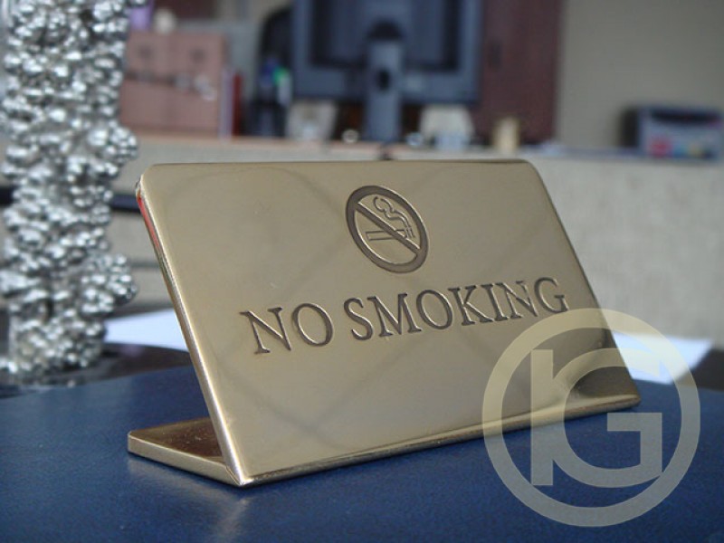 Металеві інформаційні таблички не курити, виготовлення табличок виконано на замовлення, методом травлення і фрезерування металу, покриття золото, темний лак.