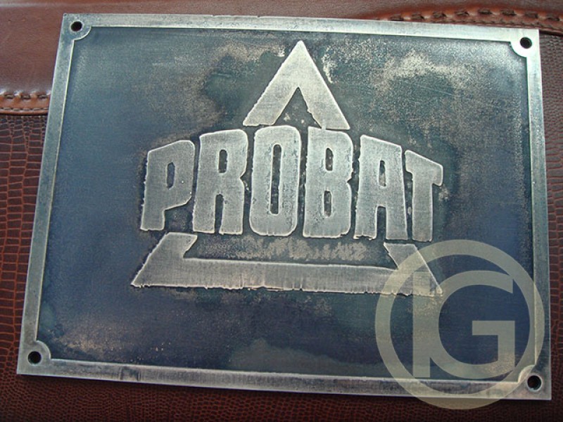 Виготовлення табличок з металу з логотипом "probat", з ефектом зістареного металу, виконано методом травлення, покриття нікель з чорнінням ...